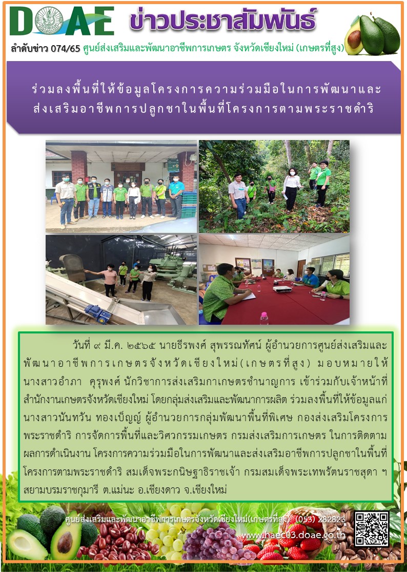 เข้าร่วมการประชุมคณะทำงานสนับสนุนศูนย์พัฒนาโครงการหลวงและโครงการพัฒนาพื้นที่สูงแบบโครงการหลวง พื้นที่อำเภอแม่แจ่ม ครั้งที่ 2/2565 24 พฤษภาคม 2022