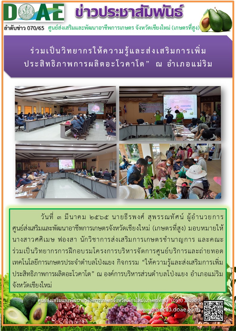 ศูนย์ส่งเสริมและพัฒนาอาชีพการเกษตร จังหวัดเชียงใหม่ (เกษตรที่สูง) สนับสนุนพันธุ์พืช “โครงการผลิตพืชพันธุ์ดีฯ” แก่สำนักงานเกษตร อำเภอจอมทอง 15 ธันวาคม 2021